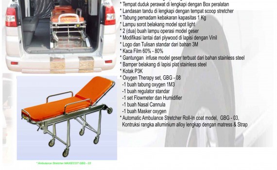 Spesifikasi Ambulance Standart 1 Spesifikasi Ambulance Standart 1 * Lampu Rotary Light Bar Oval LTF 2000, CK – 02 […]